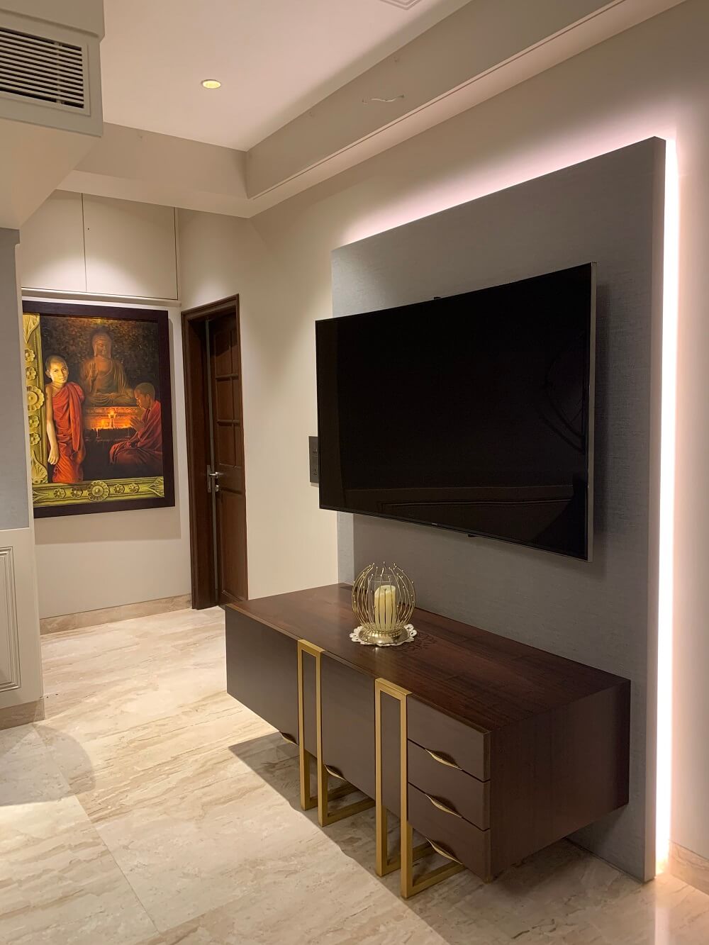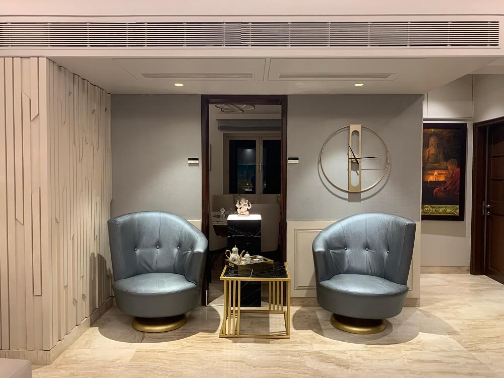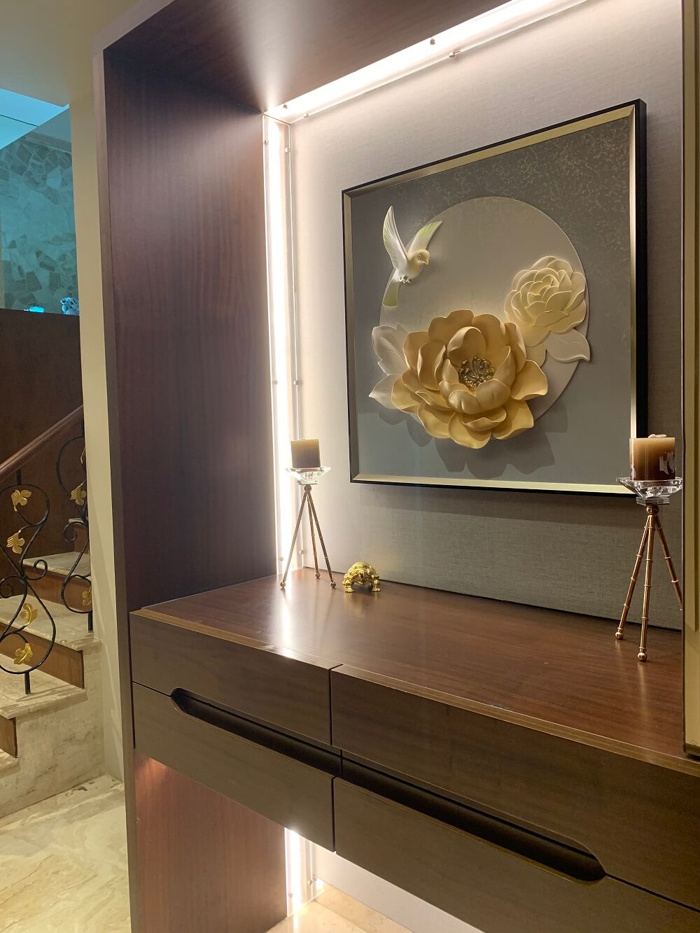 The aim was to create a space that had classic contemporary asthetic, but at the same time exude colour and eclectic elements throught accent furniture, art and lights.
