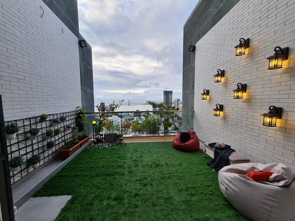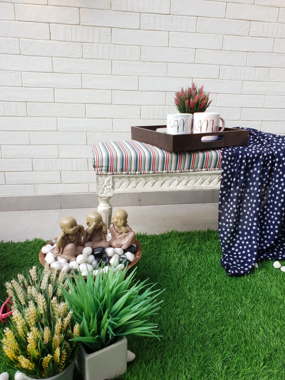 Terraces are a rare luxury in Mumbai apartments. This terrace was designed as landscaped garden, sit out with a highlight brick wall & ambient lighting, creating a cozy and lounge vibe.